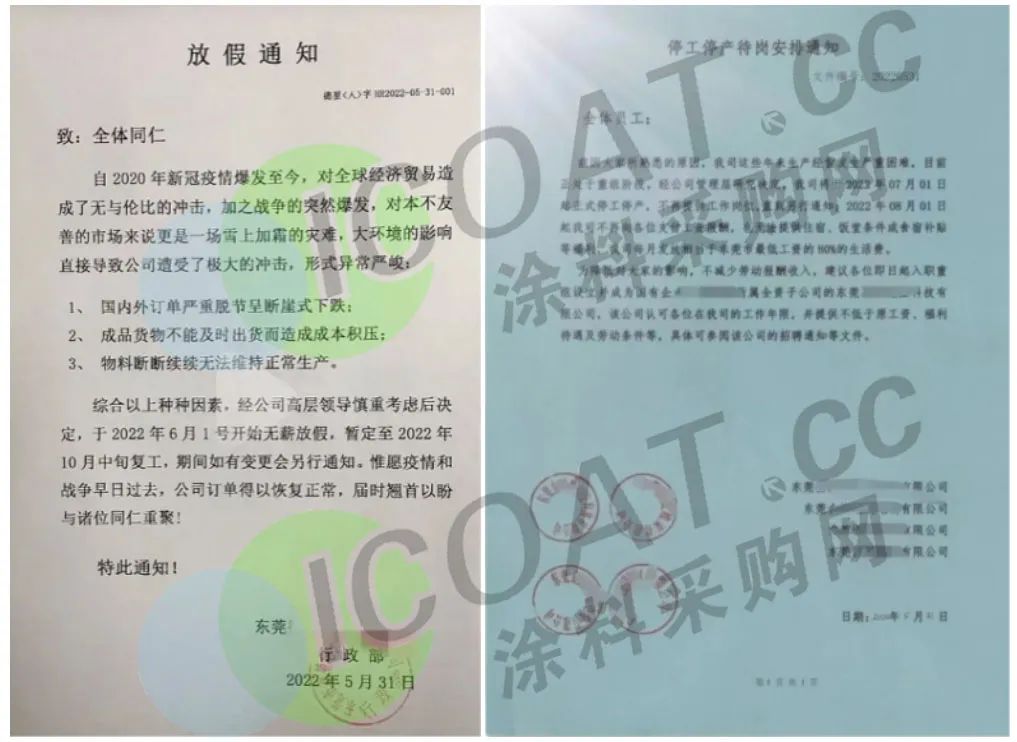 據涂料采購網了解,近期停產、停業、放假、結業的企業并不在少數,降薪、裁員也此起彼伏,其中包含了制造業、電子、外貿等多個行業,可見眾多領域已經迎來“凜冬”。