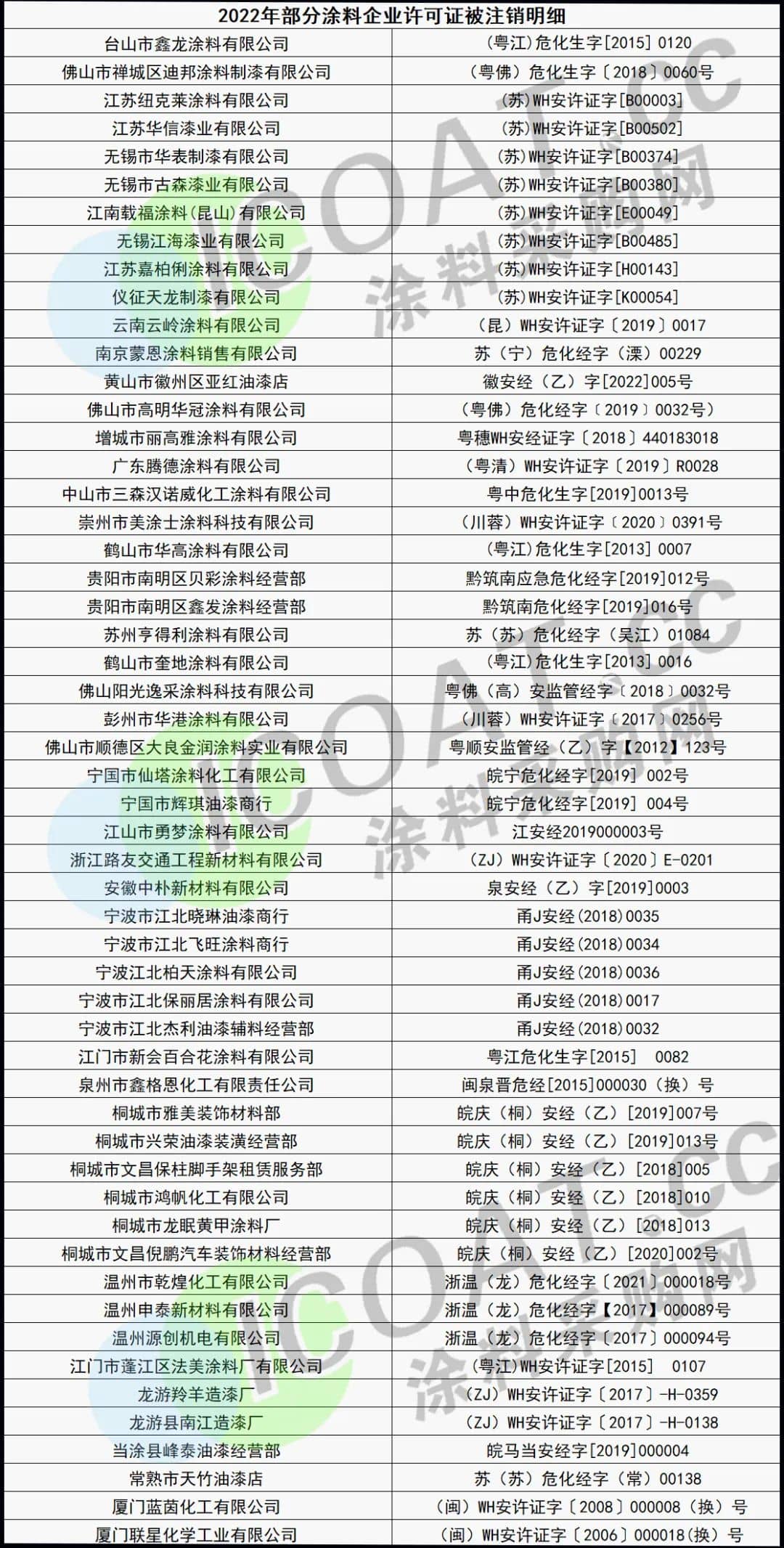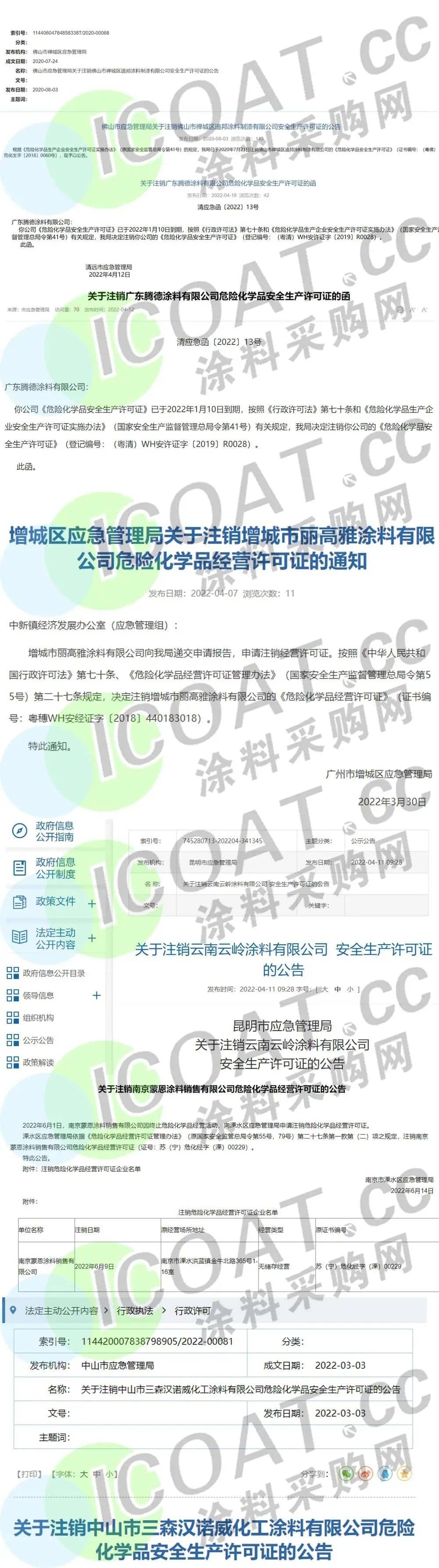 50多家涂料企業(yè)、200多家化工企業(yè)許可證被注銷!