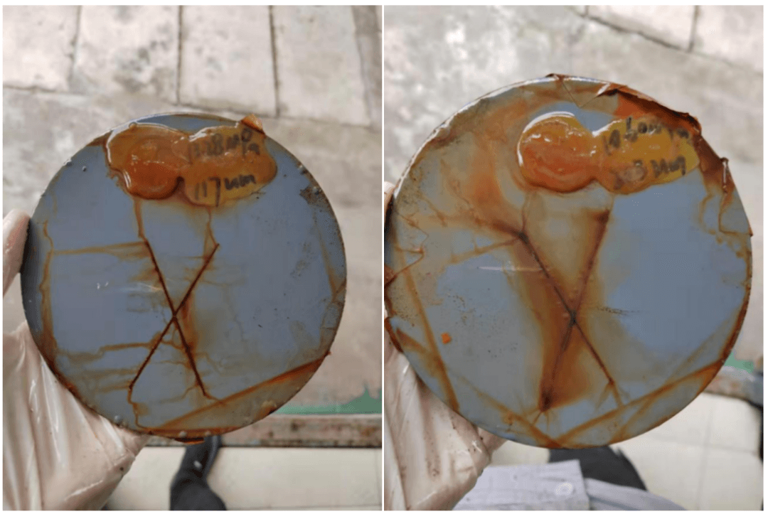 據(jù)實(shí)驗(yàn)顯示,該專利發(fā)明具備優(yōu)異的耐鹽霧性,跟線噴板測試鹽霧已達(dá)1842h,實(shí)驗(yàn)過后漆膜無起泡、無脫落、無銹蝕。不僅擁有良好的耐化學(xué)品、耐溶劑、耐水、耐鹽水性,還能保持優(yōu)良的耐久性和防腐蝕性能。