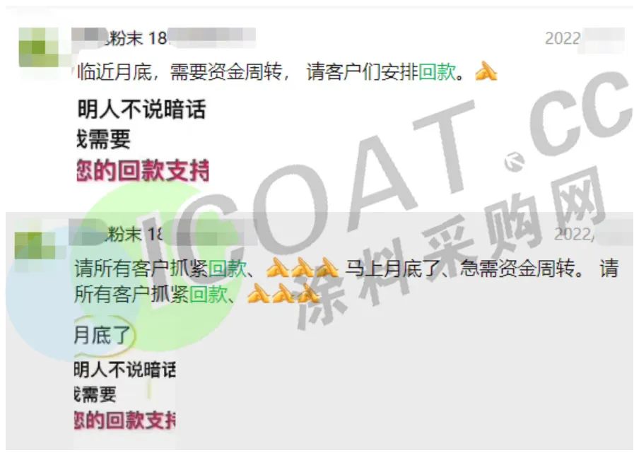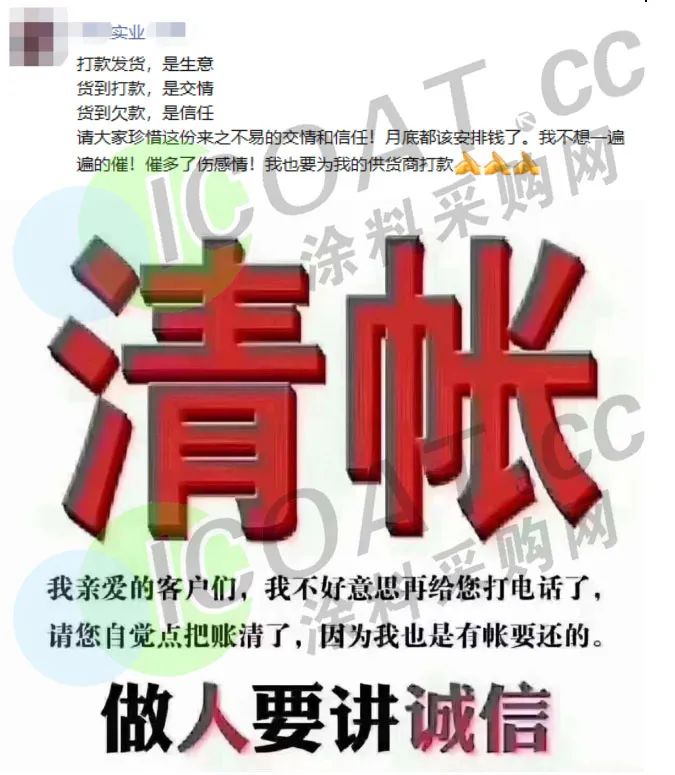 另有多家涂料、化工企業(yè)為了緩解貨款壓力,誠懇請求未付款的客戶抓緊時間安排回款。