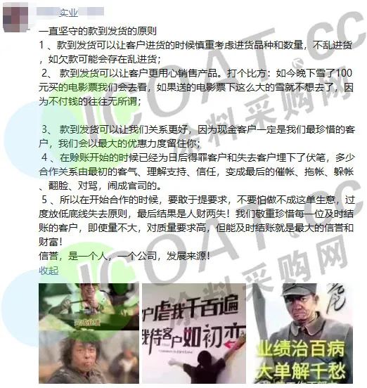 某粉末廠表示,今年回款不好的客戶,將不再有欠款支持,你資金有壓力的時候,我沒停止供貨,我資金回籠的時候也不想聽你的任何悲慘故事,欠出去的是信任和感情。