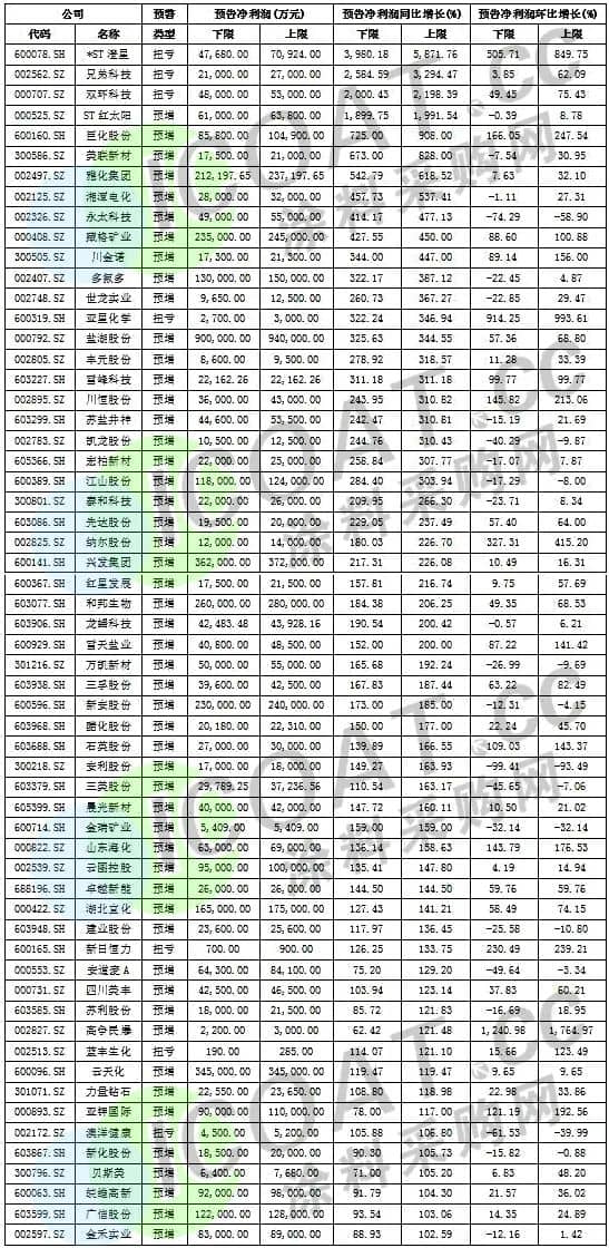 化工行業中報業績預喜的上市公司
