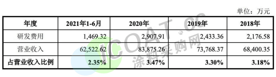 本次再戰(zhàn)IPO,光華股份研發(fā)情況并未顯著改善。2018年至2021年上半年(以下簡(jiǎn)稱為“報(bào)告期內(nèi)”),公司研發(fā)費(fèi)用分別為2176.58萬(wàn)元、2433.36萬(wàn)元、2907.91萬(wàn)元、1469.32萬(wàn)元,占營(yíng)業(yè)收入的比例分別為3.18%、3.30%、3.47%、2.35%。