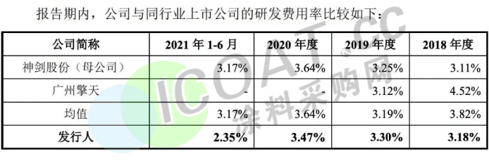 橫向來(lái)看,光華股份研發(fā)水平同樣不及同行。報(bào)告期內(nèi),公司研發(fā)費(fèi)用率僅在2019年略高于行業(yè)均值,2021年上半年差距進(jìn)一步擴(kuò)大。