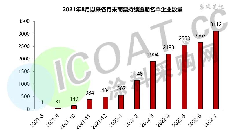 據(jù)上海票交所公布的名單,截至2022年7月31日的商票持續(xù)逾期企業(yè)合計(jì)3112家,較上月末增加445家,其中首次出現(xiàn)的企業(yè)624家,再次出現(xiàn)大幅上升。這也讓越來越多的行業(yè)關(guān)注到,商票逾期或?qū)⒔o產(chǎn)業(yè)鏈上環(huán)環(huán)相扣的企業(yè)帶來不可預(yù)期的影響。