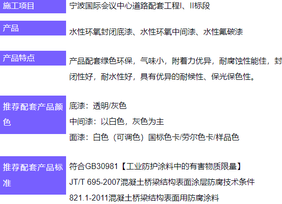 國際會議中心的建成,標(biāo)志著寧波擁有了舉辦國家領(lǐng)導(dǎo)人峰會等重大活動的主場外交平臺,為寧波增添了一處活力開放的城市第三空間和標(biāo)識明顯的城市新地標(biāo),因此,其道路配套工程也顯得尤為重要。嘉寶莉通過專業(yè)的橋梁防腐解決方案,助力建設(shè)寧波國際會議中心道路。