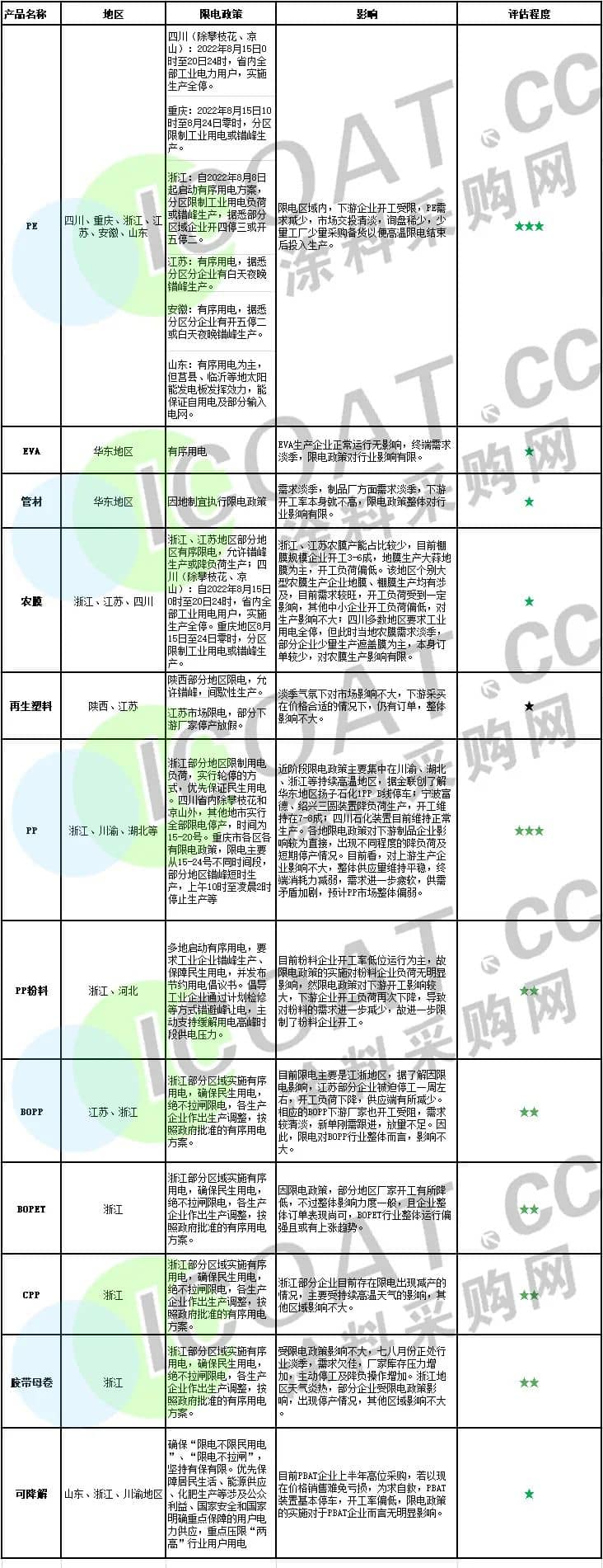 據(jù)涂料采購網(wǎng)不完全統(tǒng)計,目前已有近30家上市公司發(fā)布臨時限電停產(chǎn)公告,被停產(chǎn)波及以及產(chǎn)能減少的化工品包括尿素、磷化工、合成氨等。更為可怕的是,不少化工品在全國多個城市產(chǎn)能均有發(fā)布,且產(chǎn)業(yè)鏈上的化工原料生產(chǎn)商也受到了影響。在連鎖反應(yīng)之下,也會帶動更多的化工品供需失衡風(fēng)險。