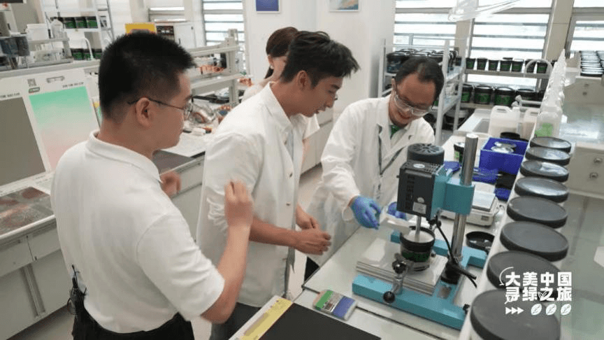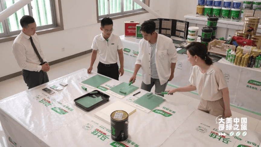 除了園區的生態之美,三棵樹的綠色硬實力也不容小覷。武大靖一邊和大家一起尋綠,一邊還開發了新技能,如愿當了一回“粉刷匠”。