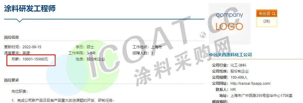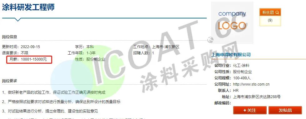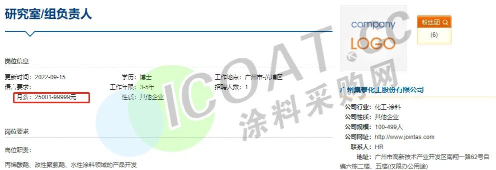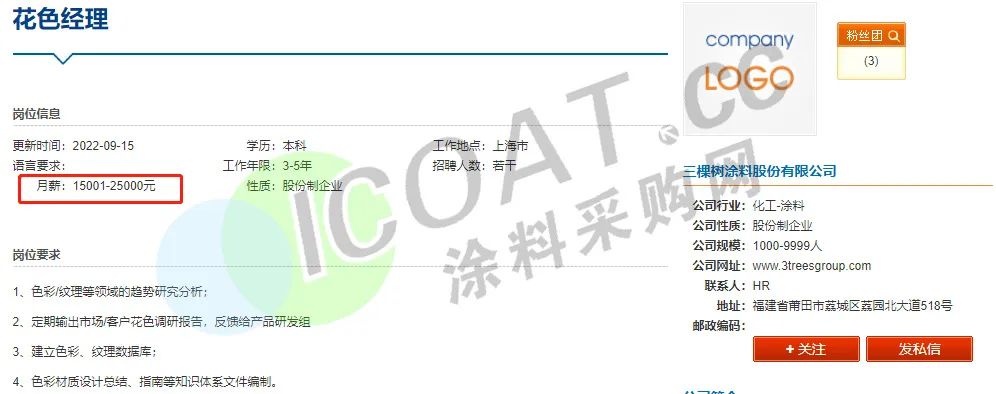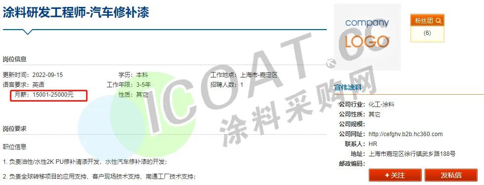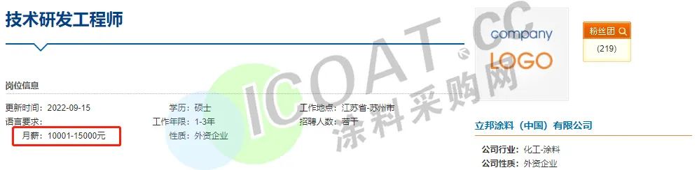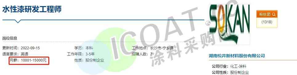 這也就解釋了為何多家涂料企業高薪聘請技術人才,“防水茅”東方雨虹甚至拋出了“年薪600萬”的橄欖枝招聘生產運營總監。三棵樹、申得歐、華秦科技、中遠關西、艾仕得、集泰股份、宣偉涂料、立邦、松井股份等多家涂料行業知名企業也在高薪聘請技術人員,薪資待遇在15-25K甚至更高。