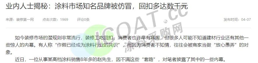 看到這里,不少人會感到震驚,如此大規模的制假售假,會不會在被查獲之前已經銷售出去了,而我們日常居住的樓宇、駕駛的汽車、使用的電器會不會用到的就是這些不合格產品。更為細思極恐的是,我們衣食住行幾乎離不開涂料和涂刷,那么除了被查出的制假售假等不良牟利行為,涂料行業還有哪些“黑幕”呢?