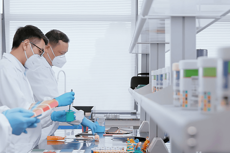 在企業整體布局方面,科迪色彩于2021年正式投產的安徽明光生產基地,不僅采用最新的中控全自動一體化的生產流水線,還引入了MES概念,通過ERP軟件與DCS(自動控制系統)對接,將所有設備全部物聯,配備全新的高效研磨設備200多臺,以及18條全自動生產線。華東、華南雙基地的格局,讓企業生產的優質產品能夠快速交付到客戶手中。