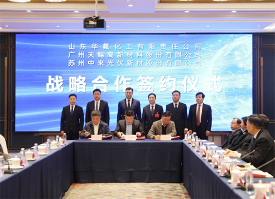 今年以來華氟化工作為一家山東省省級“專精特新”中小企業,不斷聯動借力、強勢聚力、精準發力,正加快推進目前的高性能含氟新能源項目,與廣州天賜高新材料股份有限公司、蘇州中來光伏新材股份有限公司達成戰略合作,建造擁有世界領先水平的、用于新能源領域的含氟聚合物生產基地,打造高端精細氟化工產品產業鏈,并成為以TFE為基礎的含氟表面防護材料及含氟表面清洗材料的知名供應商,從而培養為新能源、新基建領域提供含氟材料解決方案的決心和能力。