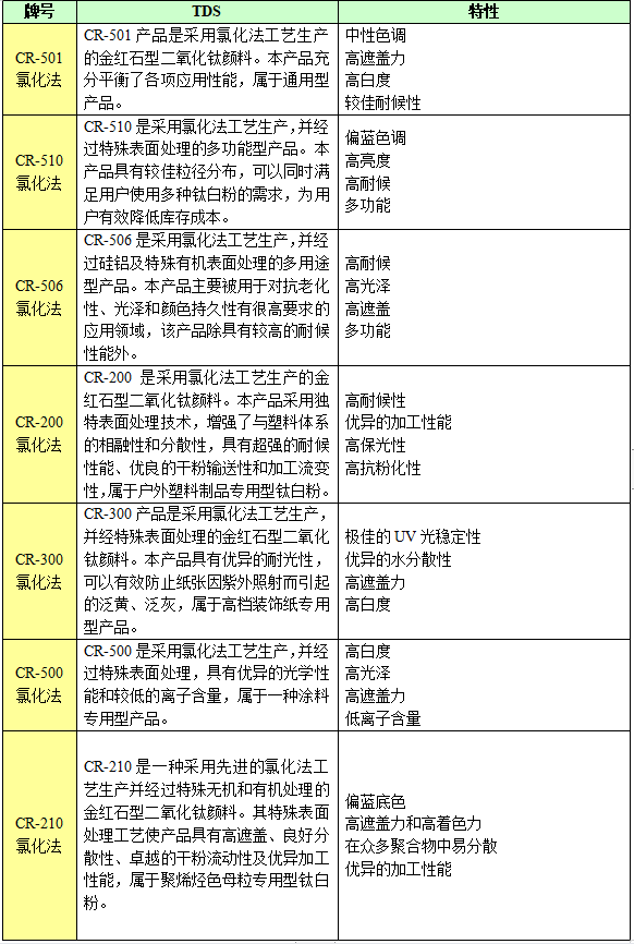 湖北、湖南、安徽等辦事處可為客戶提供中信鈦業的氯化法金紅石型鈦白粉CR-501、CR-506、CR-510、CR-200、CR-300、CR-500、CR-210等一系列產品,它們兼具高光澤度、分散性優、高耐候性、高遮蓋力、粒徑分布均勻等產品特性,并具有優越的光學性能及應用性能,可以同時滿足汽車OEM及修補漆、卷材涂料、工業防腐涂料、粉末涂料等多個應用領域客戶群體的采購需求。