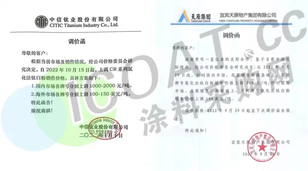 國內情況來看,高端氯化法鈦白粉價格也在上漲。中信鈦業和天原股份陸續發函宣布,氯化法產品國內售價提高800-2000元/噸,國外售價上調100-150美元/噸左右。部分企業已經開始停產清庫存,價格下跌空間十分有限,調漲預期增加。