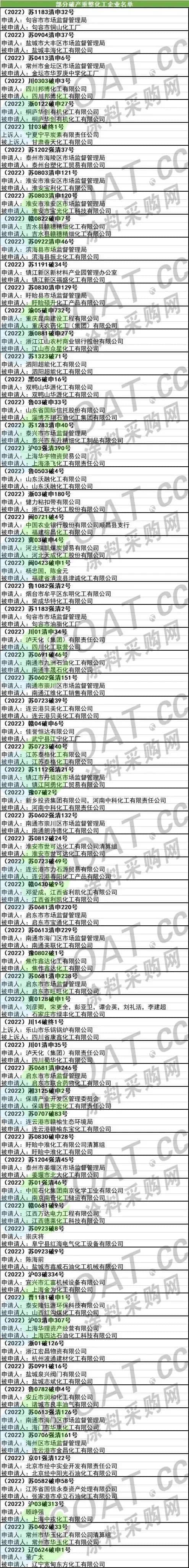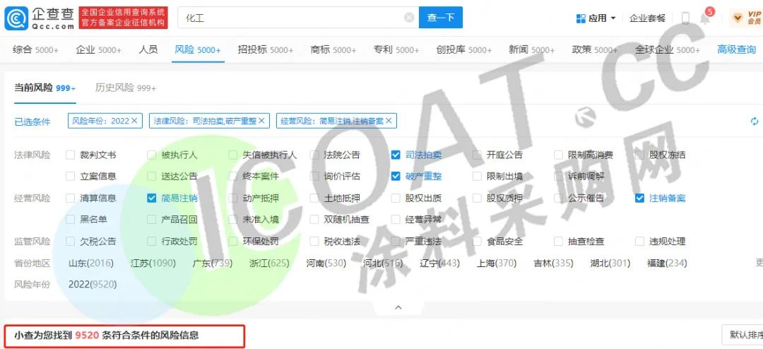 9500多家化工企業(yè)破產重整、倒閉注銷、法拍