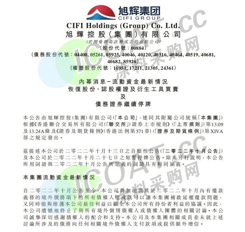 民營房企“三好生”旭輝集團在停牌3個交易日后公告,已暫停支付公司境外融資安排項下所有應付的本金和利息。截至11月1日,旭輝境外債務總額合計約68.5億美元,到期未付的本息總額約為4.14億美元。