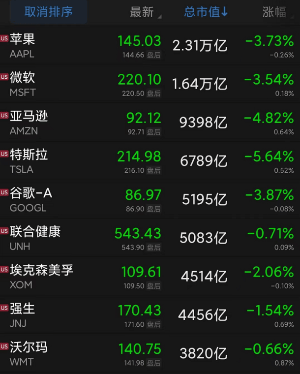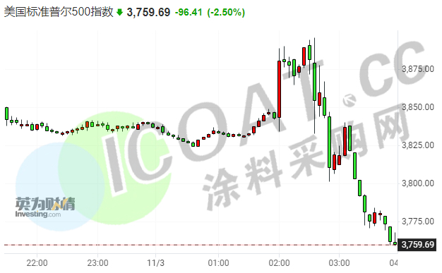 標(biāo)普500指數(shù)11個板塊“全軍覆沒”均跌超1%??蛇x消費板塊收跌3.7%,信息技術(shù)/科技板塊跌3.47%,電信板塊跌超3%,房地產(chǎn)、原材料、能源板塊至多收跌逾2.6%,公用事業(yè)板塊跌超1%。