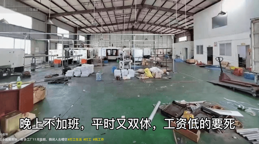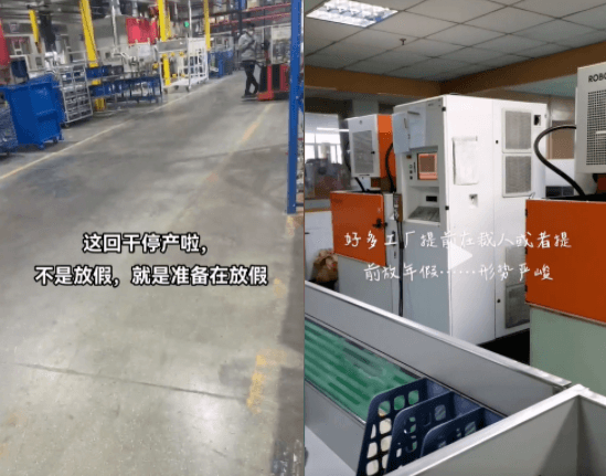 眾多網(wǎng)友曬出自己所在工廠的現(xiàn)狀,車間設備再無轟鳴聲,人員也沒有熱火朝天的干勁,提前放年假和被裁掉的每天都有。某汽車廠員工表示,今年已經(jīng)沒有生產任務了,企業(yè)和其他同行也開始陸續(xù)放假了。