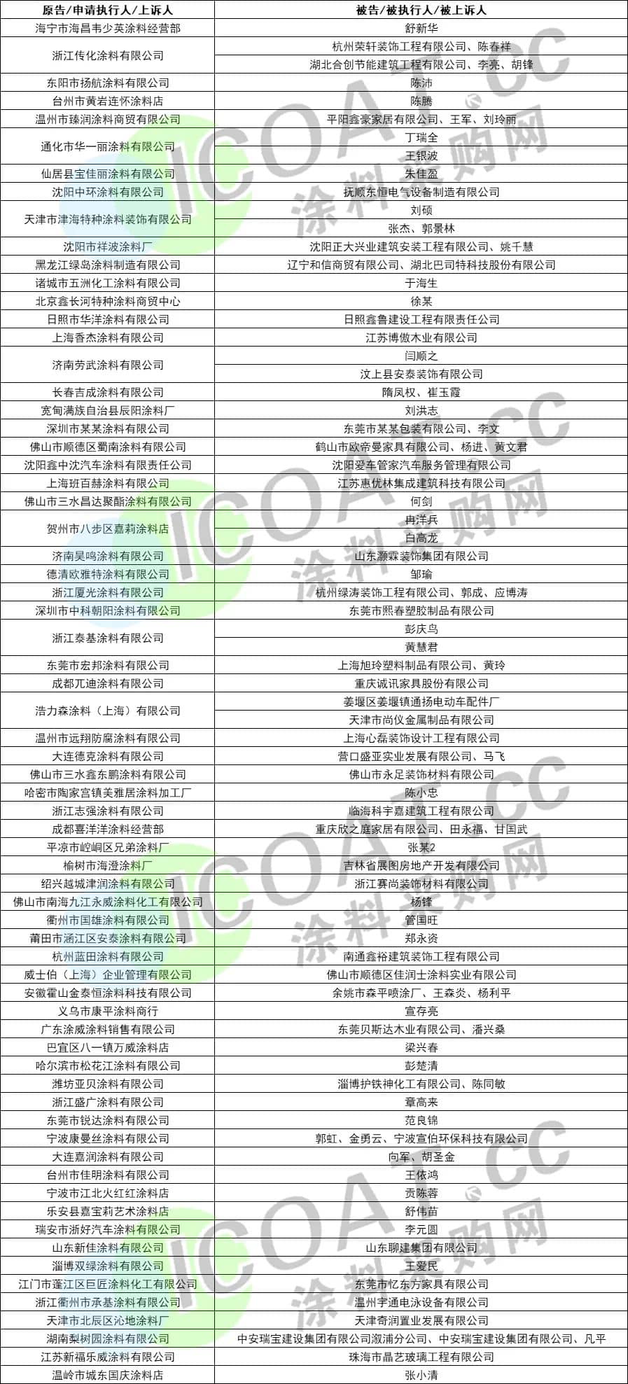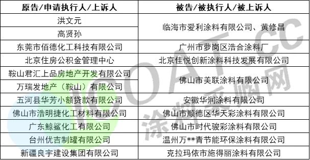 涂料企業(yè)為被告/被執(zhí)行人/被上訴人的部分官司訴訟