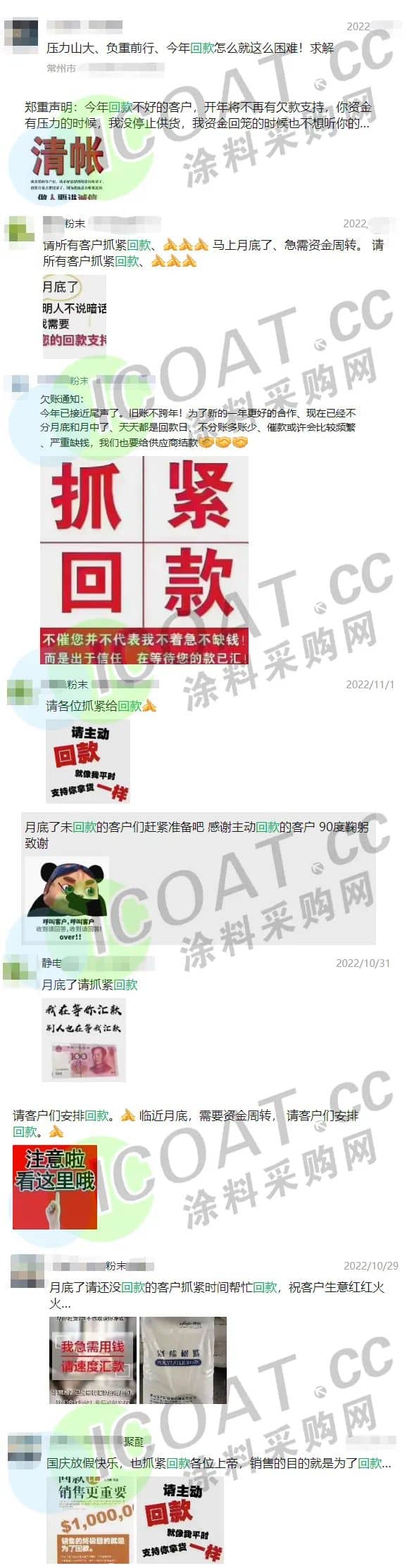 盡管一直以來(lái)都沒(méi)有什么“話語(yǔ)權(quán)”,但在年末的資金鏈危機(jī)之中,涂料企業(yè)還是勇敢發(fā)聲,催促客戶盡快回款,并表示,對(duì)于欠款用戶次年將不再提供支持。