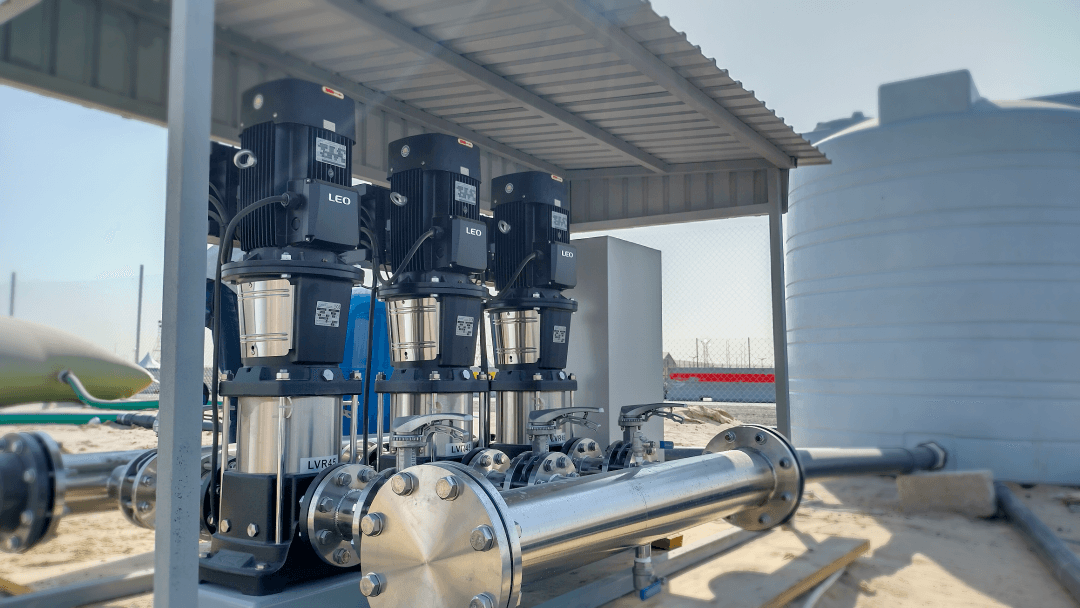 針對卡塔爾球迷村供水存在的現場環境極端、輸水效率低等情況,利歐泵業為其量身定制了一套賽事用水解決方案,可保障球迷村每天2萬人的安全用水。