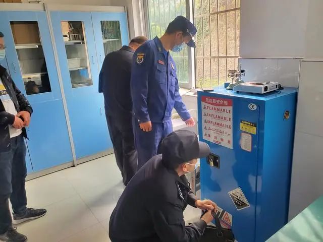 十堰支隊開發(fā)區(qū)成立專項行動小組開展易制爆危化品全面檢查及隱患治理工作。對易制爆危險化學(xué)品存儲及使用、危險化學(xué)品和危險廢物管理制度、危化品及危廢領(lǐng)用、臺賬清單、相關(guān)實驗人員的安全教育、應(yīng)急處置方案、消防安全標(biāo)識及消防器材設(shè)施等一系列問題進(jìn)行了檢查。