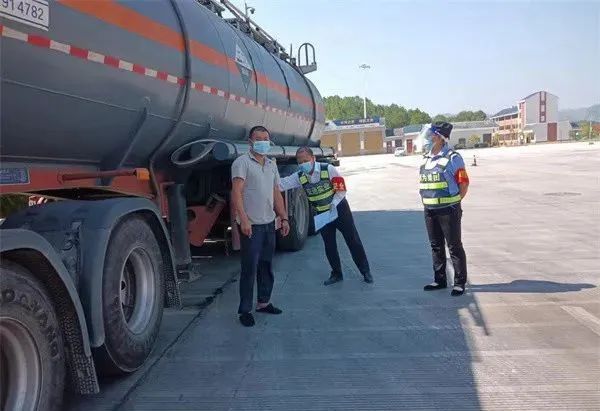 陽鹿高速公路荔浦服務(wù)區(qū)開展危化品車輛危險品運(yùn)輸車輛檢查,荔浦服務(wù)區(qū)加大對危化品車輛的管控力度,對車輛類型、車牌、進(jìn)出時間、貨物名稱及數(shù)量、司機(jī)聯(lián)系方式等信息登記備案、建立臺賬。