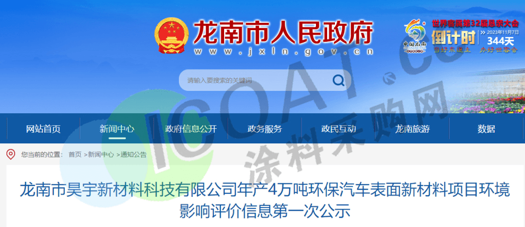 龍南市昊宇新材料年產4萬噸環保汽車表面新材料項目公示,項目預計地面積30694平方米,建成后可年產水性汽車涂料6000噸等。