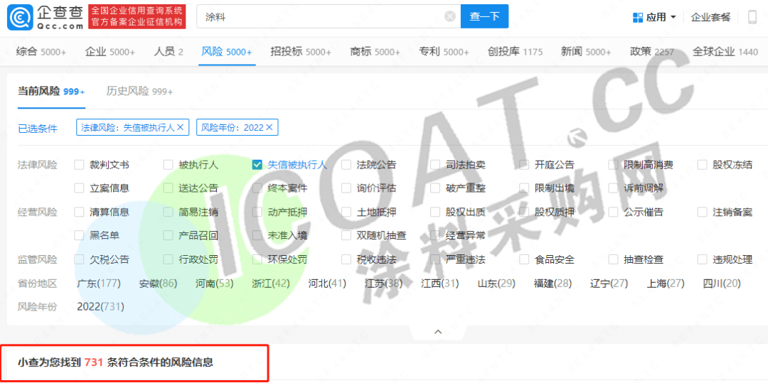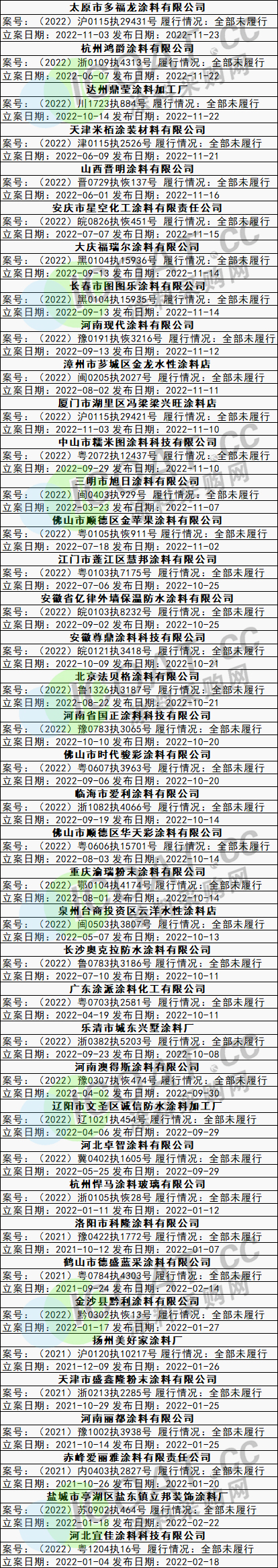 據涂料采購網不完全統計,2022年至今,涂料行業因拖欠賬款或沒有履行法律義務等被列入了失信被執行人名單的企業超過700家,涂料大省廣東,化工重鎮浙江、江蘇、山東等地均有企業“中招”。