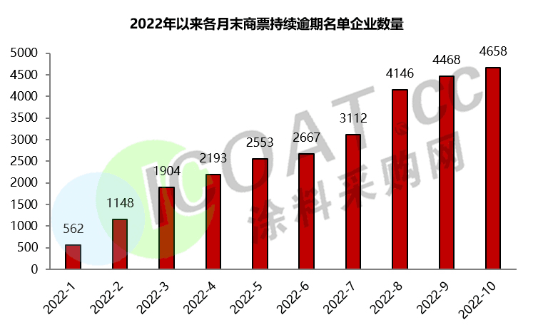 賬款尚有機會與對方溝通要回,但票據的兌付就沒那么容易了。近日,上海票據交易所公布了截至2022年10月31日的票據持續逾期名單,名單上逾期企業合計4658家,較前一個月末增加190家。其中首次出現的企業504家,出現3次及以上的企業數量為3524家,占比76%,這部分企業出現債務問題可能性較大。