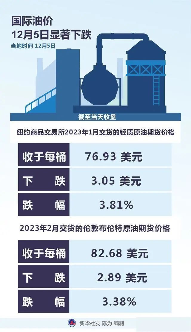 成品油跌價原因主要是國際原油的價格下跌,歐佩克+維持產量不變的基礎上,歐盟于5日對俄海運出口原油實施限價正式生效,七國集團和澳大利亞宣布對俄海運出口原油設置每桶60美元的價格上限,國際原油價格自高位下跌重回80美元/噸左右。