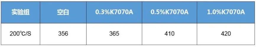 K7070A對(duì)粉末Tg,反應(yīng)性的影響