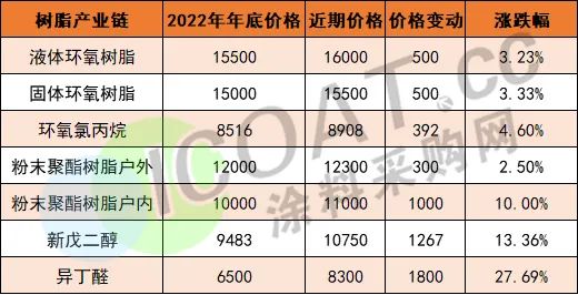 樹脂產(chǎn)業(yè)鏈上,近期固體、液體環(huán)氧樹脂都呈現(xiàn)出漲價態(tài)勢。山東地區(qū)、黃山地區(qū)固體環(huán)氧樹脂日漲200元/噸,較去年年底上漲500元/噸;華東地區(qū)液體環(huán)氧樹脂日漲200元/噸,較去年年底上漲500元/噸。聚酯樹脂方面,戶內(nèi)產(chǎn)品較2022年末價格調(diào)漲1000元/噸,戶外產(chǎn)品調(diào)漲300元/噸。