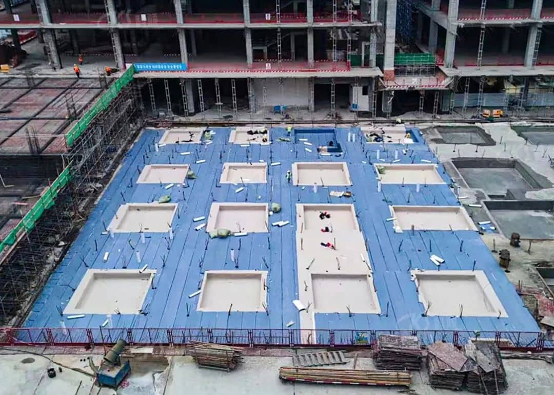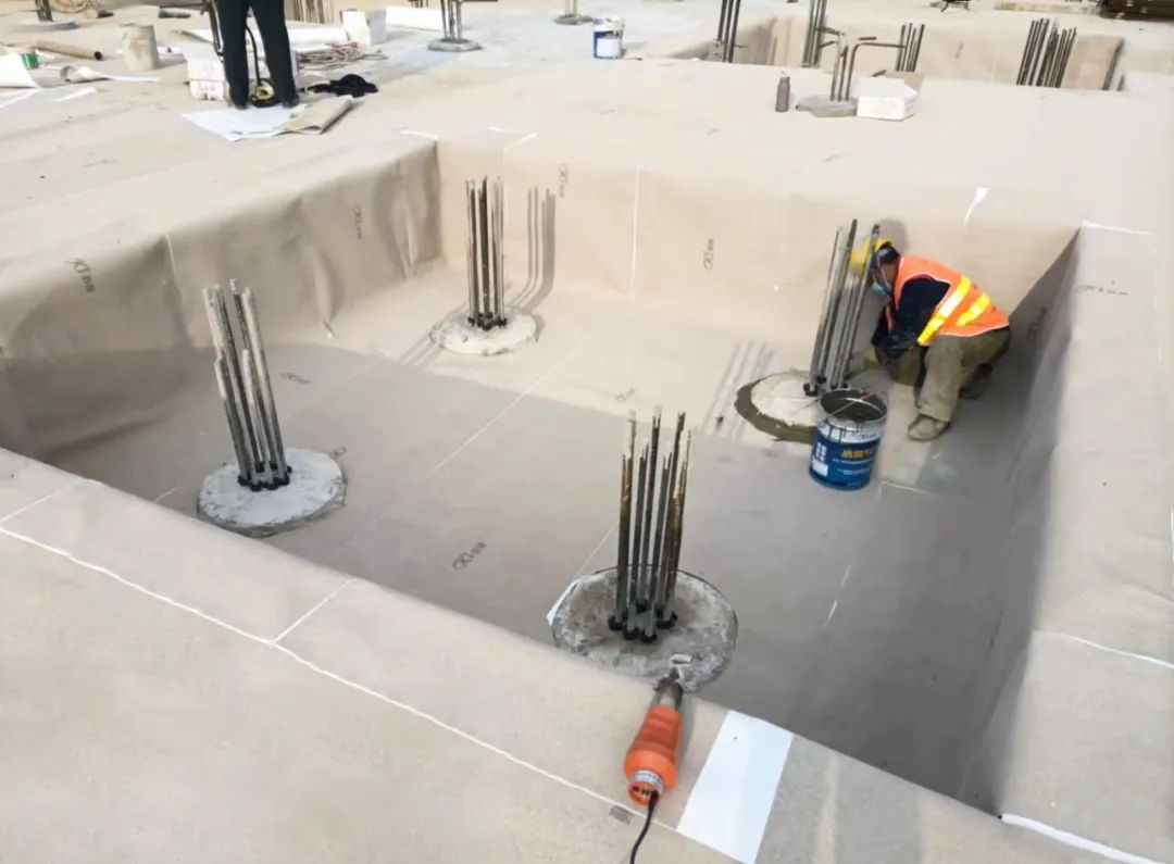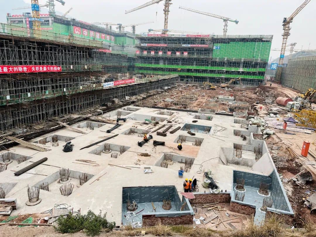 該工程建成后將成為中國(廣西)自由貿(mào)易試驗(yàn)區(qū)地標(biāo)性項(xiàng)目,2022年底科順承建的東塔防水項(xiàng)目完工,春節(jié)后陸續(xù)進(jìn)場,火速開展地下室底板施工。