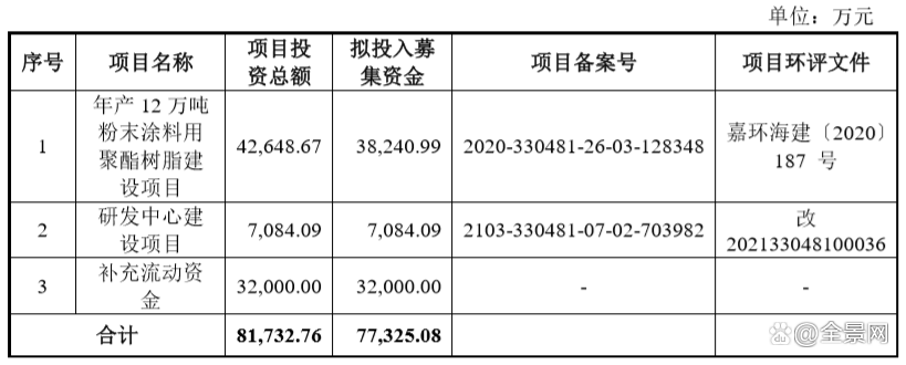 去年10月28日,浙江光華股份開啟了招股環節,擬在深市發行新股并上市。此次IPO擬募集7.7億元,主要用于擴大產能,其中3.82億元用于年產12萬噸粉末涂料用聚酯樹脂建設項目,7084.09萬元用于研發中心建設項目,3.2億元用于補充流動資金。