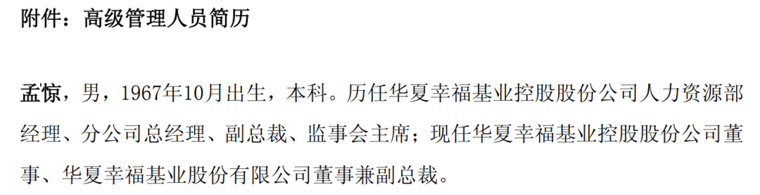 根據華夏幸福過往的公告信息,孟驚于1967 年出生,現齡56歲,本科學歷,他在2000年就加入華夏幸福,至今在華夏幸福任職了23年。