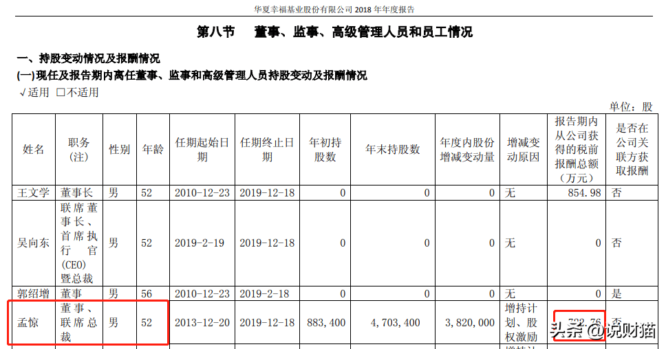 2018年時,孟驚在華夏幸福的報酬總額為722.76萬元,僅次于王文學。