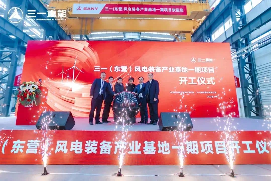 三一(東營)風(fēng)電裝備產(chǎn)業(yè)基地一期項目開工儀式在山東東營經(jīng)濟(jì)技術(shù)開發(fā)區(qū)舉行。規(guī)劃總用地277畝,分三期建設(shè)實施。這是三一首個臨海風(fēng)電裝備制造基地,可以滿足海陸風(fēng)電市場生產(chǎn)需求。