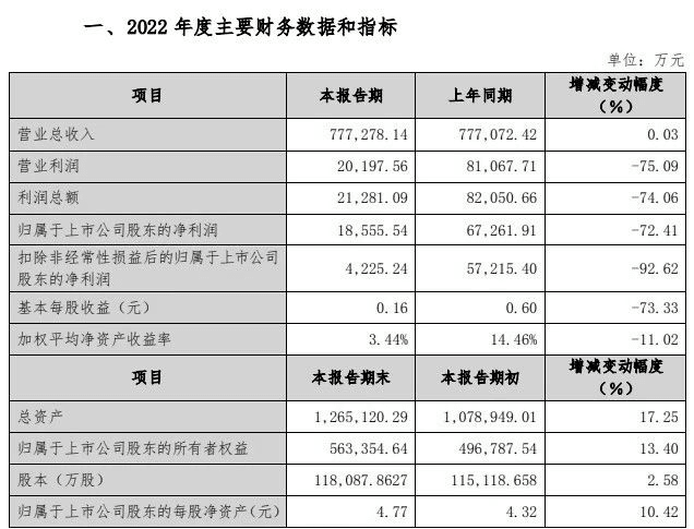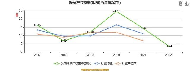 數據顯示,2022年公司加權平均凈資產收益率預計為3.44%,較上年同期下降11.02個百分點。