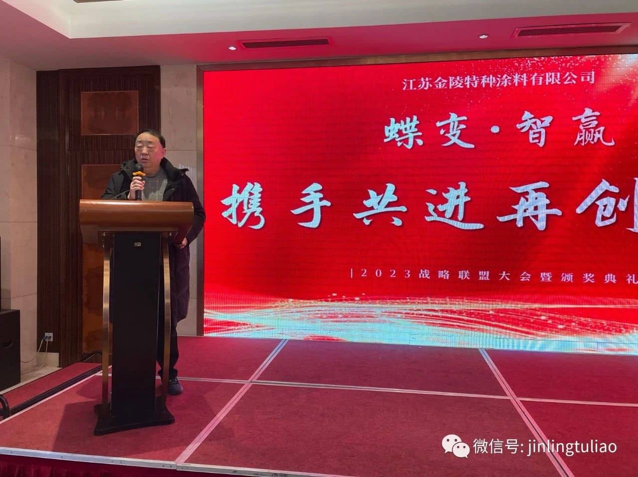 副總經(jīng)理辛立文主要圍繞強(qiáng)化品牌輸出,強(qiáng)化營(yíng)銷(xiāo)管理體系,強(qiáng)化營(yíng)銷(xiāo)團(tuán)隊(duì)建設(shè),強(qiáng)化經(jīng)銷(xiāo)商市場(chǎng)基礎(chǔ),強(qiáng)化廠商協(xié)同發(fā)展,強(qiáng)化激勵(lì)創(chuàng)新機(jī)制等全面闡述了金陵涂料的新征程浩然開(kāi)啟,面對(duì)當(dāng)下新發(fā)展、新趨勢(shì)、新機(jī)遇,金陵涂料將同廣大經(jīng)銷(xiāo)商伙伴一同解鎖時(shí)代密碼,共享新機(jī)遇下的時(shí)代商機(jī)。