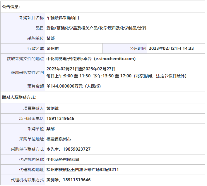 采購項目的潛在供應商應在中化商務電子招投標平臺(e.sinochemitc.com)獲取采購文件,并于2023年03月03日09點30分(北京時間)前提交響應文件。