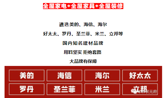華粹狀元府購房送價值10萬全屋品牌家裝,遴選美的、海爾、海信、好太太、米蘭、立邦等知名建材品牌。