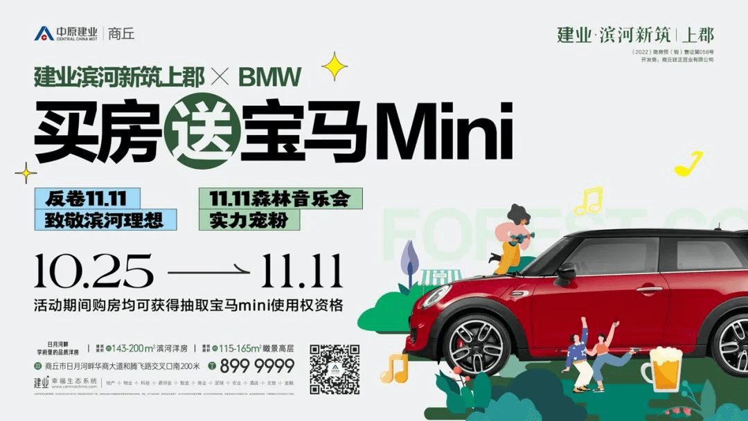 建業濱河新筑上郡攜BMW這個11.11“購給利”買房即送寶馬MINI豪車好房,好事成雙。