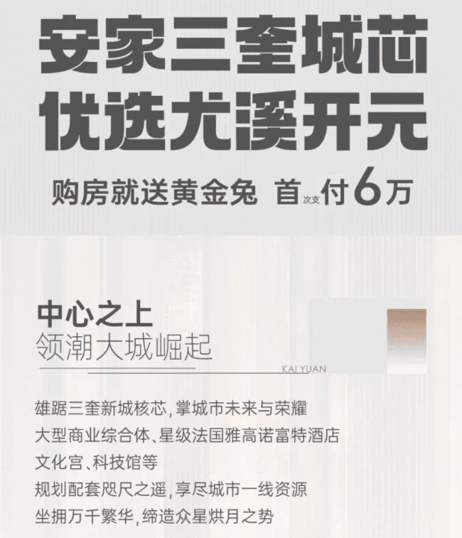 開元寶邸購房就送黃金兔,首次支付6萬。