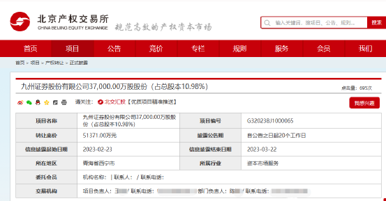 具體來看,此次中石化轉(zhuǎn)讓九州證券股權(quán),仍為“清倉式”轉(zhuǎn)讓,意在出清手上全部10.98%股權(quán),共3.7億股。轉(zhuǎn)讓底價為51371萬元,意向方需一次性支付。此外,意向受讓方須在資格確認(rèn)后3個工作日內(nèi)交納5200萬元的交易保證金。