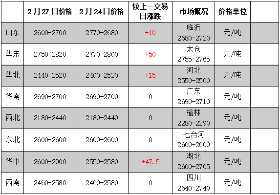2月27日,市場報盤重心小幅上漲。場內(nèi)利好消息指引,市場行情走勢偏強整理,持貨多挺價運行。華東市場現(xiàn)貨均價8575元/噸,環(huán)比上調(diào)5元,漲幅度為0.06%,華南現(xiàn)貨均價8575,環(huán)比上調(diào)50元,漲幅為0.59%。
