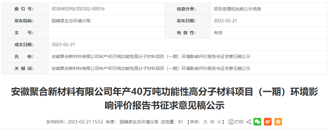 三期建設(shè)年產(chǎn)6萬噸功能高分子材料項目;
