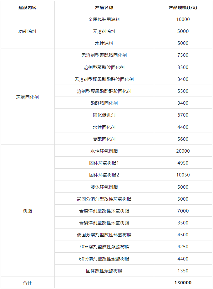 一期建設(shè)年產(chǎn)13萬噸改性環(huán)氧樹脂及環(huán)氧固化劑項目;