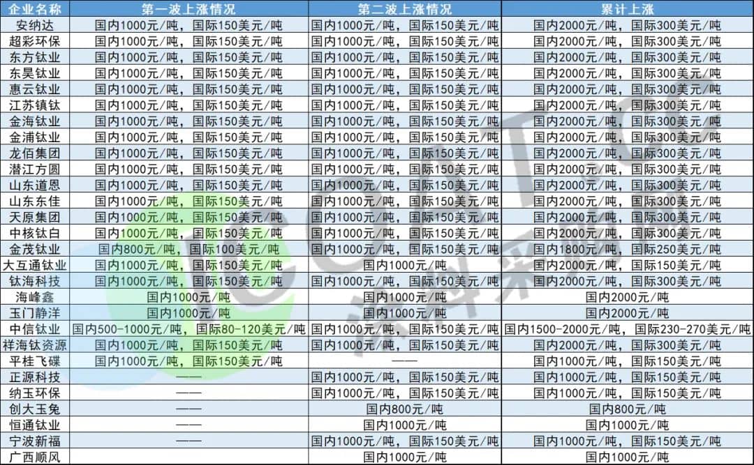 2023年國(guó)內(nèi)鈦白粉企業(yè)漲價(jià)情況