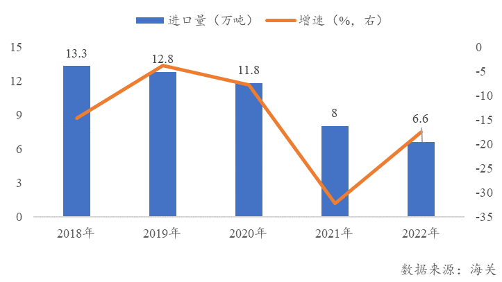 泰國(guó)作為中國(guó)雙酚A的主要進(jìn)口來(lái)源國(guó)之一。泰國(guó)國(guó)內(nèi)雙酚A生產(chǎn)企業(yè)有兩家,其中科思創(chuàng)產(chǎn)能為28萬(wàn)噸/年,其產(chǎn)品以自用為主;泰國(guó)PTT公司產(chǎn)能為15萬(wàn)噸/年,產(chǎn)品以出口到中國(guó)為主,2018年以來(lái)泰國(guó)雙酚A的出口基本上全部是PTT公司的出口。自2018年后,中國(guó)自泰國(guó)雙酚A進(jìn)口量逐年減少。2018年進(jìn)口量為13.3萬(wàn)噸,2022年進(jìn)口量?jī)H為6.6萬(wàn)噸,下降率達(dá)50.4%,反傾銷(xiāo)效果明顯。